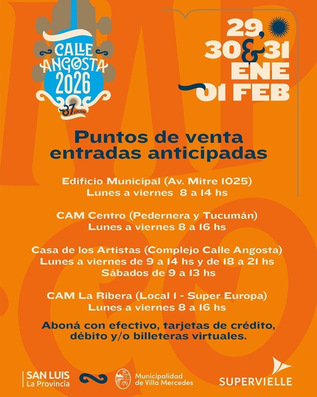 Las entradas pueden abonarse en efectivo, con tarjetas de crédito, débito y billeteras virtuales, facilitando el acceso a todo el público.