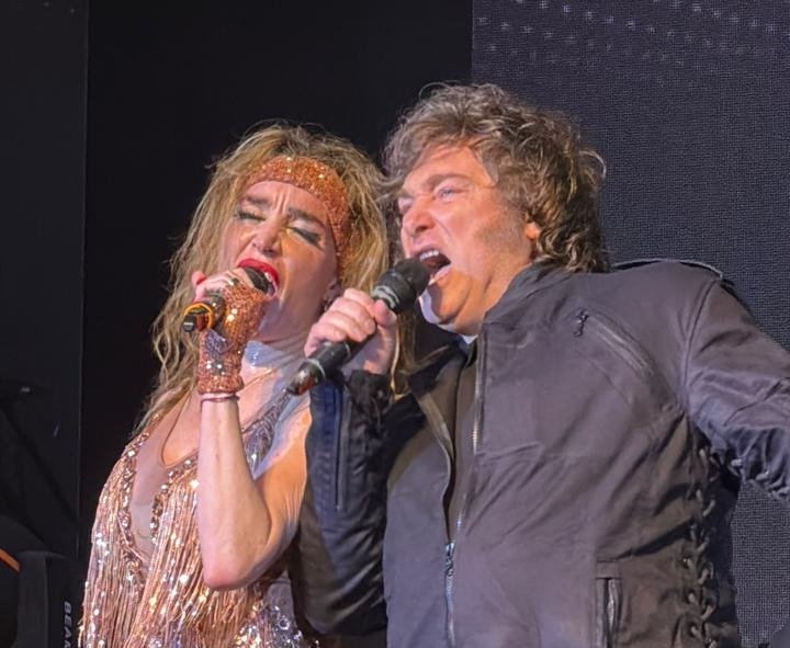 Javier Milei se subió a las tablas en Mar del Plata y cantó "El Rock del Gato" junto a Fátima Florez